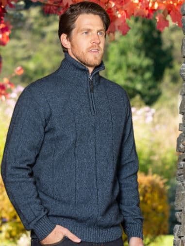 Noble Wilde luxury possum Javelin zip neck jumper for men. Lightweight, warm and as luxurious as cashmere, but much more durable as the fibre is naturally bobble resistant. Perfect for both summer and winter wear.